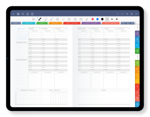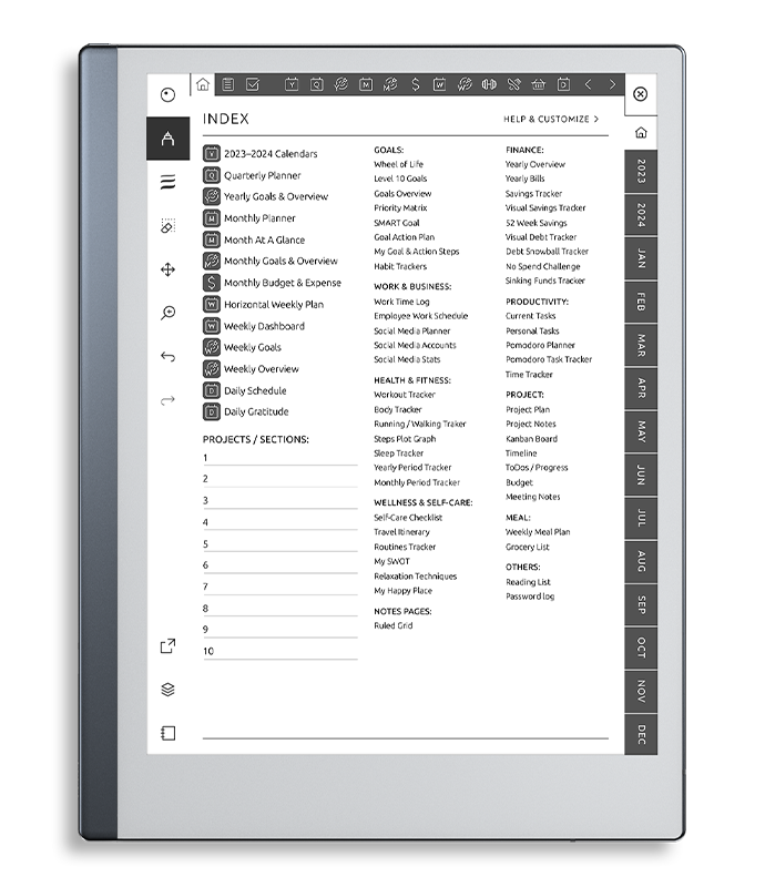 Choose your favorite planners, download them in PDF to your device and upload them to Goodnotes or a similar note-taking app. Enjoy easy navigation thanks to a quality hyperlinked page structure with clickable tabs and interactive buttons. Start working in comfort, manage your time skillfully and get the job done efficiently.