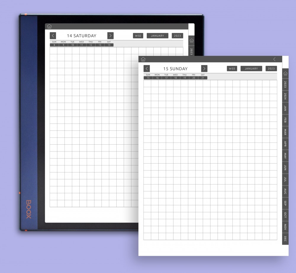 One of the most popular Onyx BOOX Notes Templates for taking notes. Download it to your tablet and enjoy a high-quality hyperlinked page structure with clickable tabs and buttons. Designed specifically for comfortable management and effective note-taking.