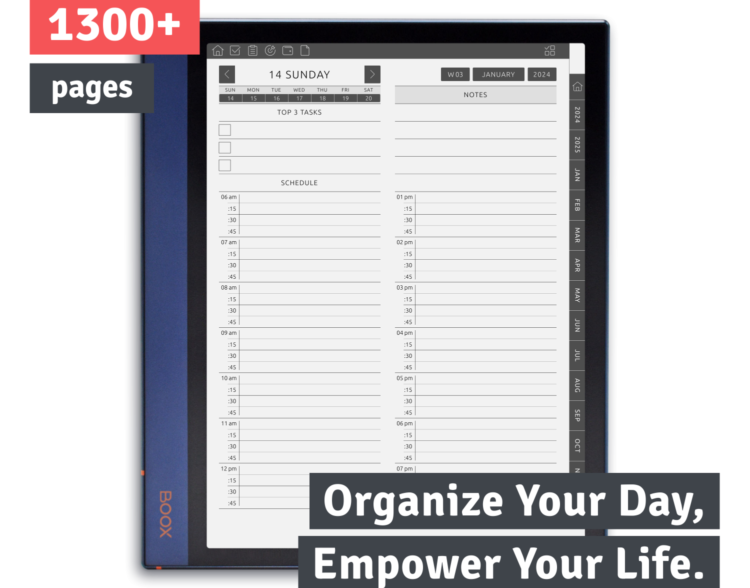 Step into the world of the Onyx Boox Daily Planner, carefully designed to meet your organizational and productivity needs. From meticulous daily planning to ambitious yearly goals, project management to financial oversight, this planner is your key to a well-ordered and triumphant lifestyle. Begin your path to smarter planning and enhanced productivity today.