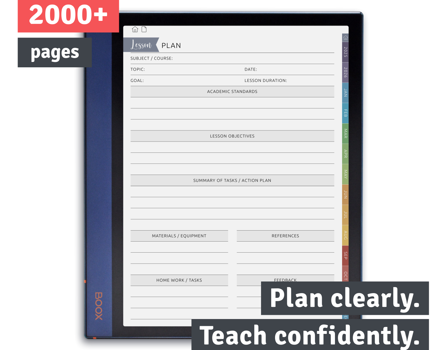 Get your teaching in order with the 2025 + 2026 Teacher Planner for Boox Onyx. Designed to make your day a little bit easier and take the guess work out of your day this planner is sure to keep your lessons, students, meetings, and to-do's all in one place. It’s a simple way to stay on top of everything in a way that’s not so stressful.