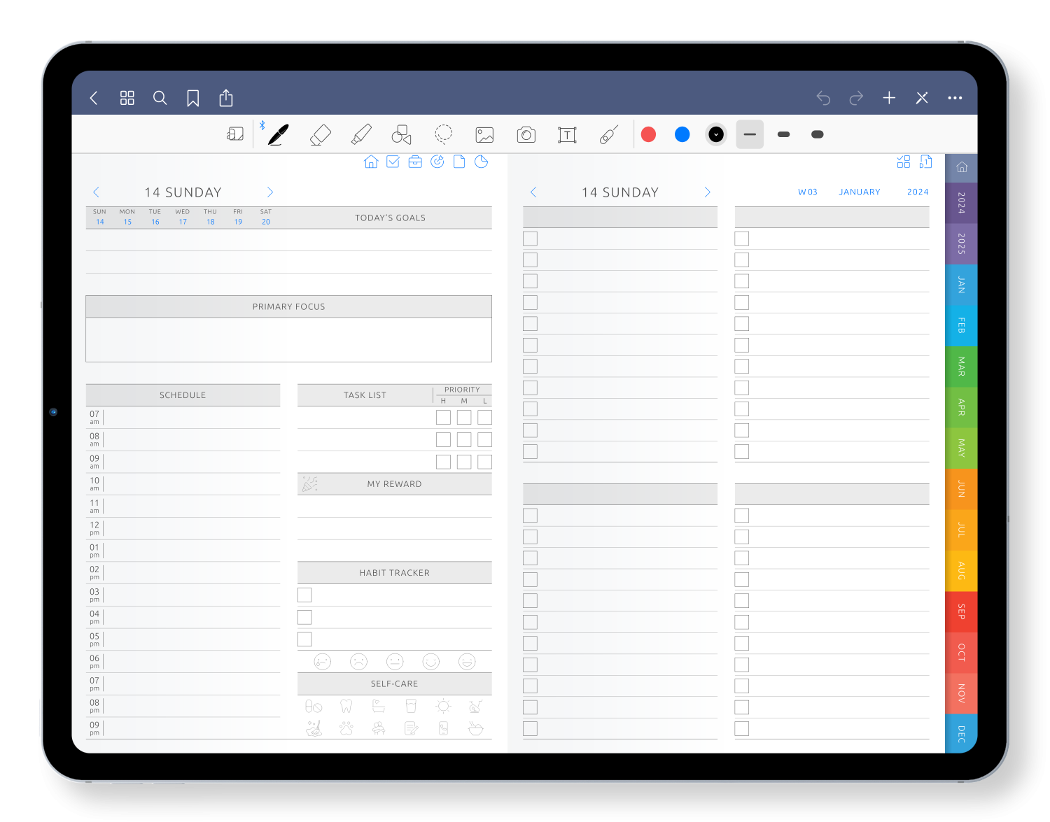 📈 Enhanced Weekly Planning – Plan your weeks precisely with tailored 5 and 7-day schedules, Weekly Routines, Goals, and an Income/Expense Tracker. Each week propels you closer to your goals as you review and adjust.