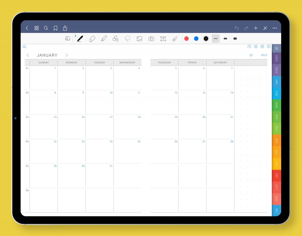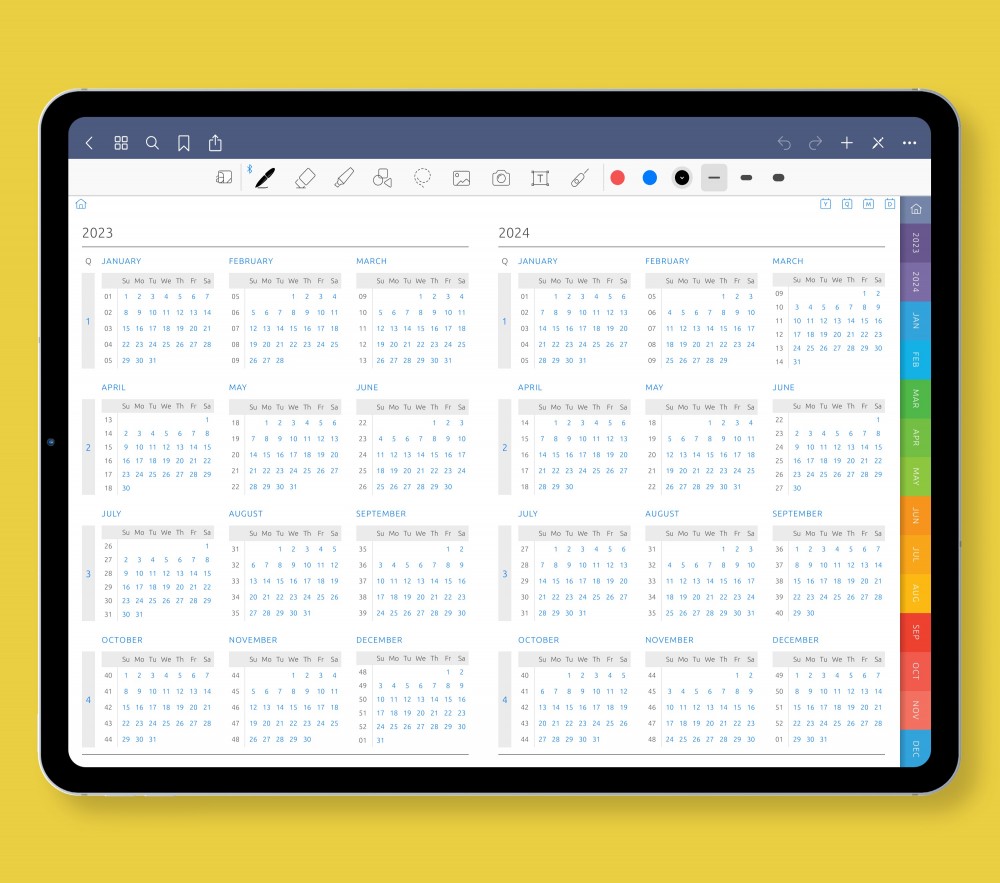 Digital Graph Diary is compatible with note-taking applications on your tablet, such as Goodnotes, Notability, Xodo, and Noteshelf. It has a hyperlinked page structure with clickable tabs and buttons designed for quick navigation and comfortable planning. Easily cope with the available tasks, be successful and achieve all the goals with this great planner.