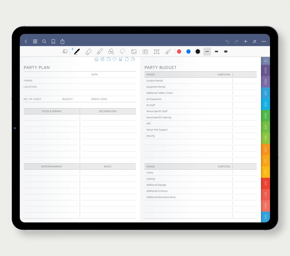 📚 Effortlessly Plan Parties: Manage event details with our Party Planning templates. Stay prepared for any celebration and keep track of reading and personal contacts effectively.