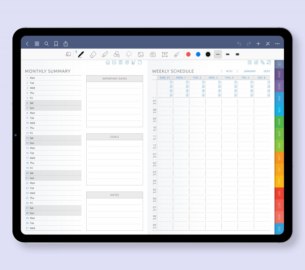 Take charge of your appointments, events, and meetings with unrivaled simplicity using our seamless scheduling solution. Empower your lifestyle by exploring our wide range of templates, including two weekly, quarterly, and annual pages. Enjoy a personalized scheduling journey like never before as you tailor every aspect to your liking.