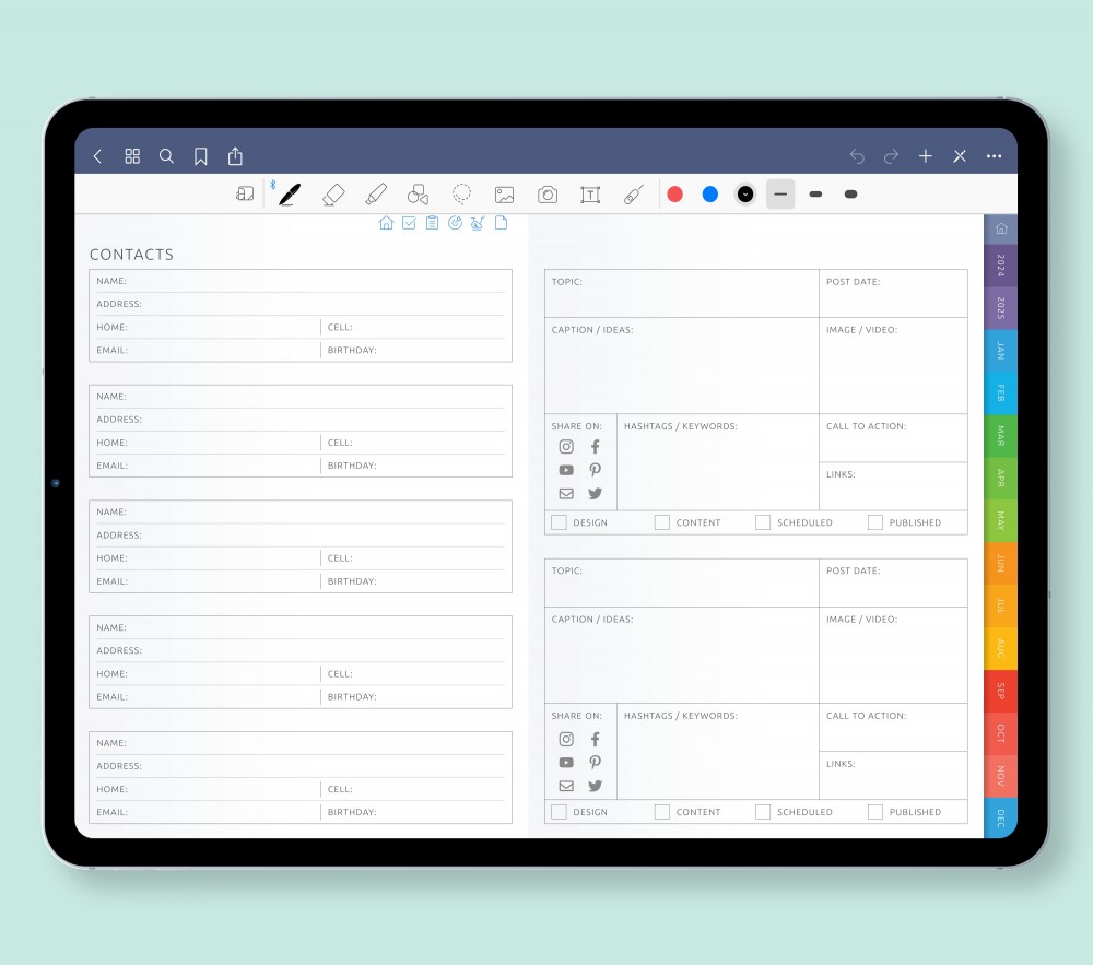 Ensure that all your crucial information is readily available with our user-friendly planner. From templates for managing your contacts, passwords, and conferences, to effectively planning your social media presence, we have you covered. Our planner offers a seamless solution to keep essential details organized and easily accessible. Stay connected, secure, and on top of your game with the convenience of our comprehensive planner.