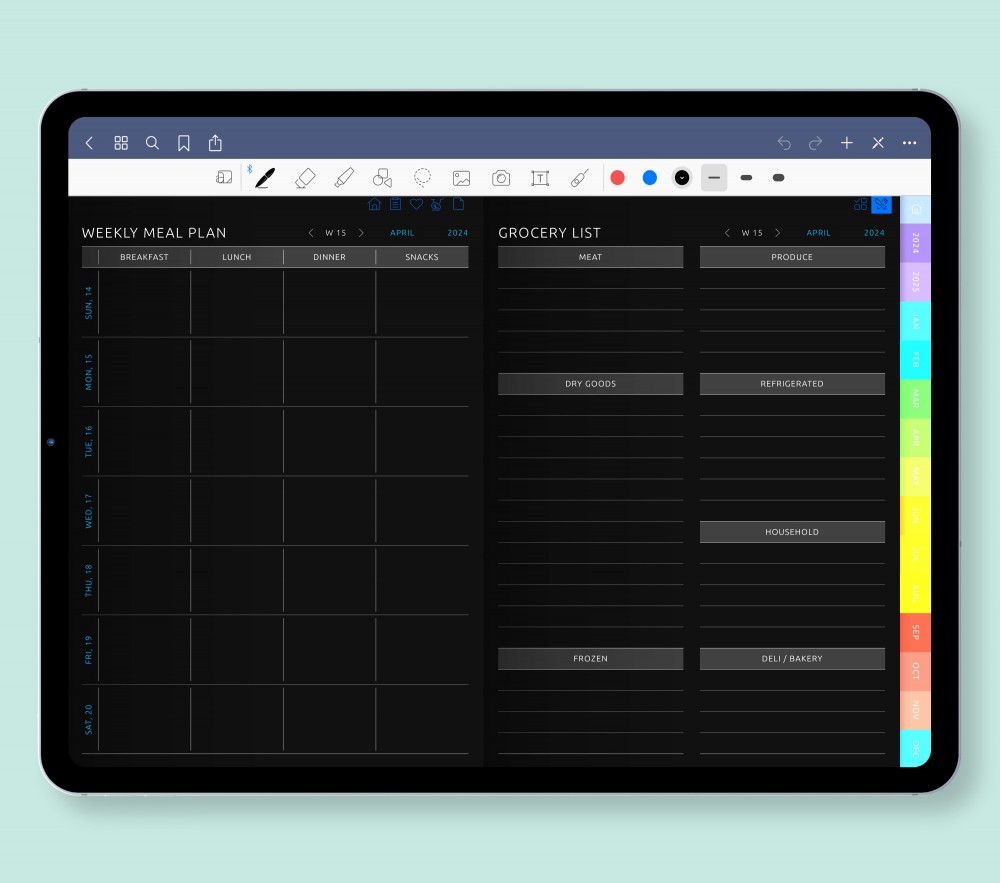 Digital Meal Planner [Dark]
