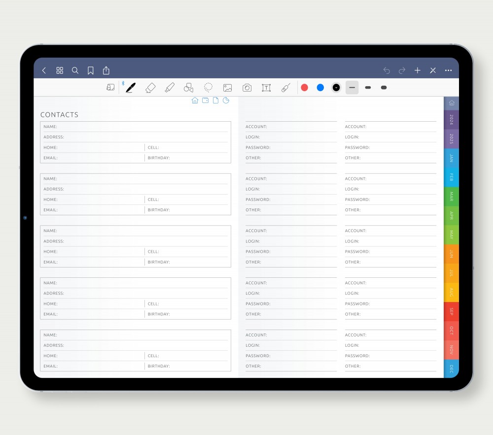 🔖 Resource Access: Employ the Others section to manage essential data with templates for Reading Lists, Favorite Authors, Quotes, Contacts, and Password Logs. Prepare for any gathering with Conference Lists and Notes, ensuring you have all necessary information organized and accessible.