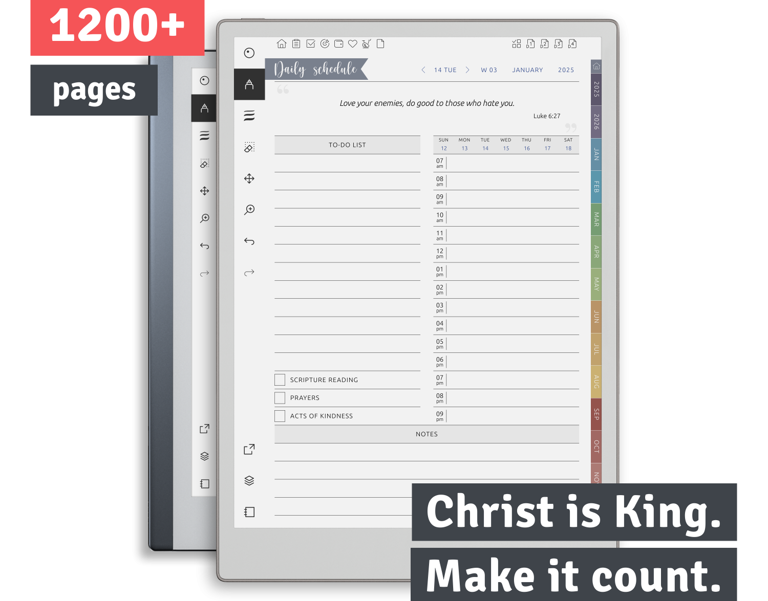 Whether you're organizing your schedule, journaling your walk with Christ, or planning long-term goals, this planner offers a purposeful, paper-like experience that supports both structure and soul.