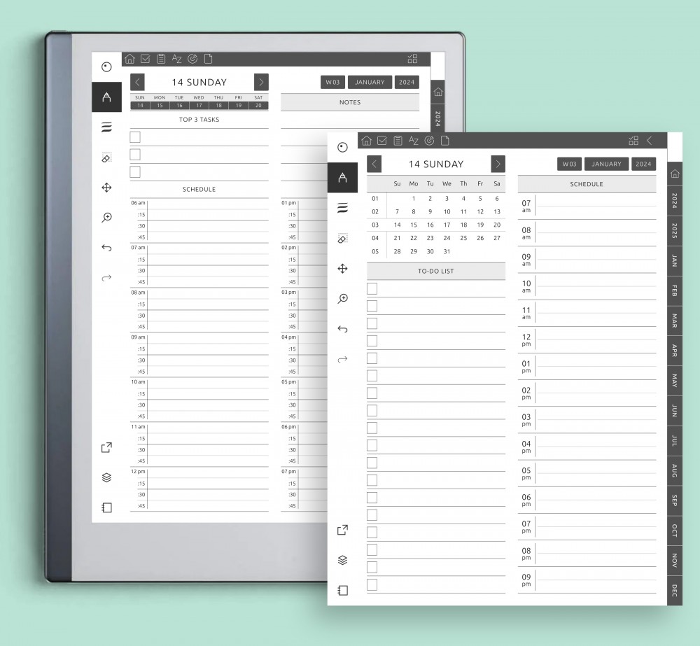 📆 Annual, Quarterly, Monthly, Weekly, Daily: Plan your time efficiently with diverse scheduling options. Choose from dozens of daily templates, including schedules, GTD (Get Things Done) Ideas Inbox, to-do lists, and more.
