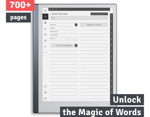 Unleash Your Reading Potential with the reMarkable Reading Journal! Carefully crafted for passionate readers and book enthusiasts, this digital tool transforms your device into the ultimate companion for tracking and enriching your literary adventures. Experience a more organized and fulfilling reading journey.
