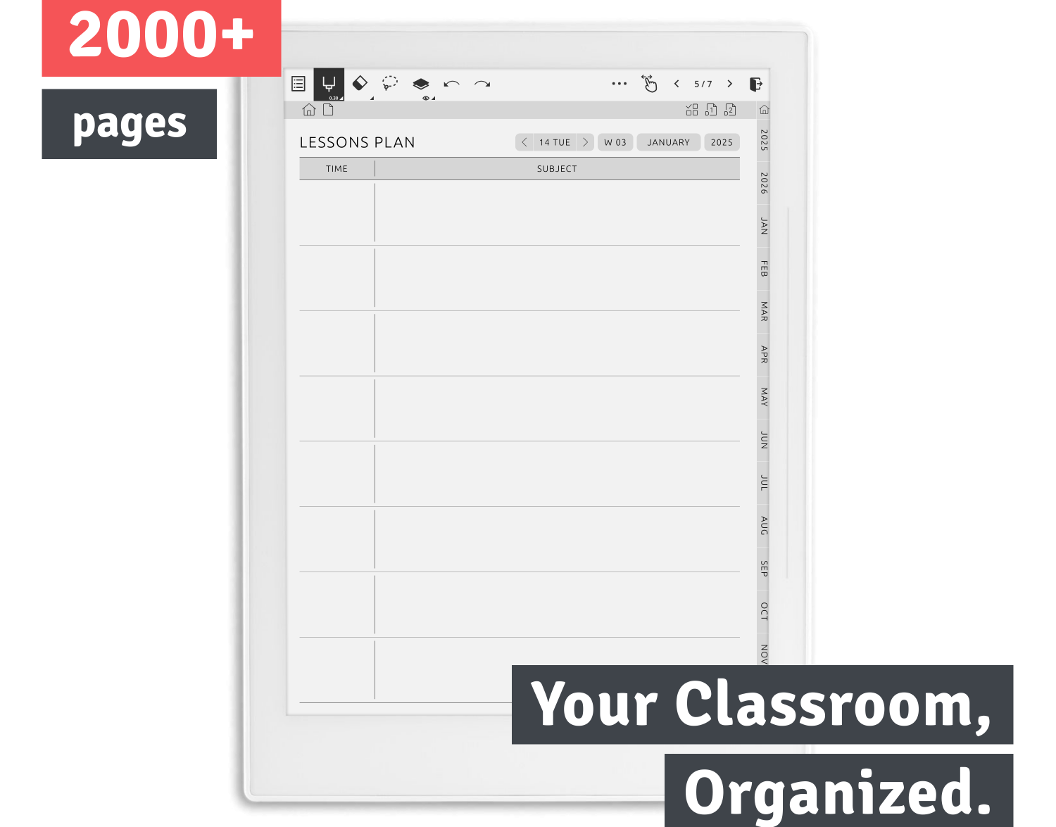 Stay organized and focused with the 2025 + 2026 Teacher Planner for Supernote. Built for teachers who want structure without clutter, this planner helps you manage lessons, students, meetings, and more in one place.